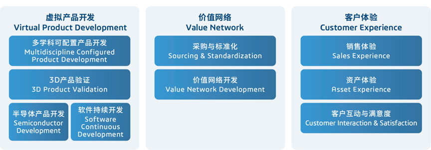 覆盖业务规划、虚拟产品开发、价值网络、客户体验及协作智能全领域